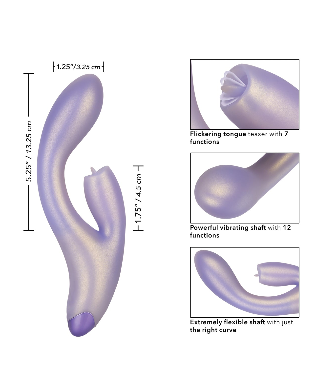 Let the sensually curved, extremely flexible G shaft find your sweet spot while the flickering tip savors your clitoris with delicious precision. With 12 independent functions of vibrations in the shaft and 7 independent functions of flickering action in the teaser, you control the rhythm and escalation, building from a teasing purr to a toe-curling crescendo. Smooth contours nestle securely in hand for effortless control, whether you crave slow, indulgent pressure or pulsing waves that push you over the edge.