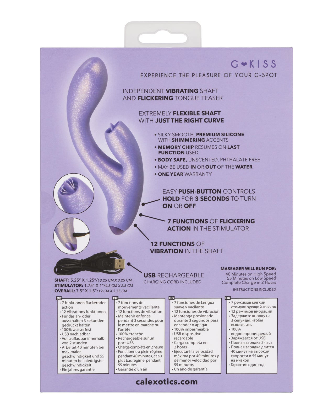G-Love G-Kiss - Purple by California Exotic Novelties is your invitation to deep, blended bliss, uniting a vibrating G-spot shaft with a flickering tongue-like teaser that teases and tempts in perfect harmony.