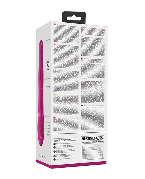The IZARA’s 360 degree multi directional rotating shaft glides smoothly where you crave it most while 5 rows of internal beads ripple and swirl for exquisite fullness and G-spot massage. The vibrating G-spot motor hums with precision and the clitoral stimulator flutters with decadent intensity, building waves of pleasure until you surrender. Crafted in smooth silicone, it embraces your body with a silky touch and blissful comfort. Take your fantasies anywhere with 100% waterproof confidence and enjoy the freedom of a fully rechargeable design that’s always ready when you are.
